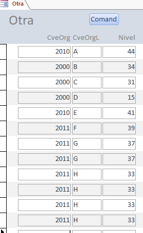 Y en el Campo Cve_Org_Letra asignar la letras (A, B, C, D) empezando por el nivel mayor al menor.