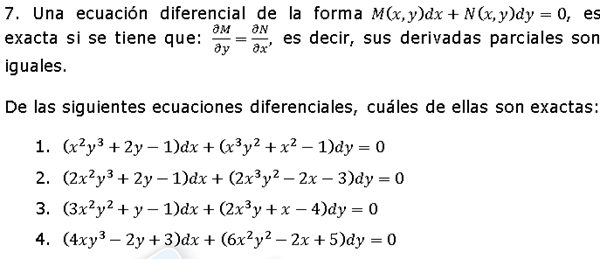 Necesito colaboración para la resolución de este punto, donde piden identificar cuales son las ecuaciones exactas.