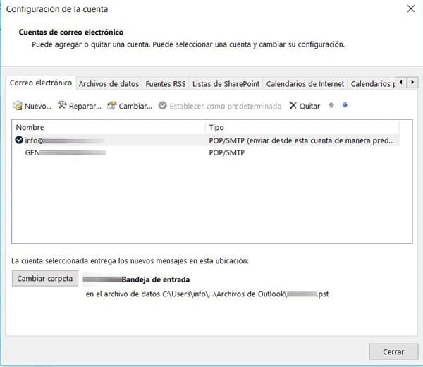 Uso varias cuentas en Outlook y por alguna razón después de cambiar de ordenador, aun estando como predeterminada la que quiero usar para enviar los emails, excel sigue usando otra.