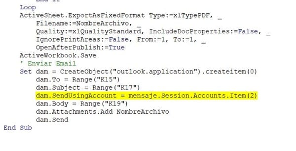 Elegir cuenta de correo al enviar un email en excel