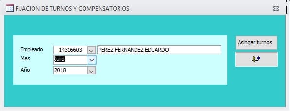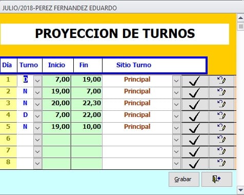 A continuación mediante este formulario se asignan los turnos del mes, el formulario se llena automáticamente con los días de mes. Ver figura.