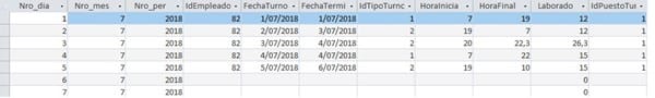 Observe que no se necesita fijar la fecha de salida, ésta se calcula con una función y con base en el tipo de turno. Al grabar obtenemos algo como la figura siguiente.