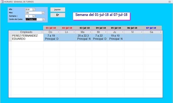 Con base en la información anterior se crean los turnos por vigilante. Ver figura siguiente