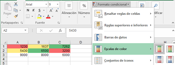 Lo que requiero es que el valor mayor de las 3 cifras me ponga color verde el que se coloca en segundo lugar en amarillo y el más bajo valor en rojo...