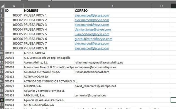 Tengo una Hoja excel en la que por las mañanas copio los pedidos pendientes de los proveedores. En otra hoja del mismo Excel, tengo todos los datos de los proveedores con email y código de proveedor.