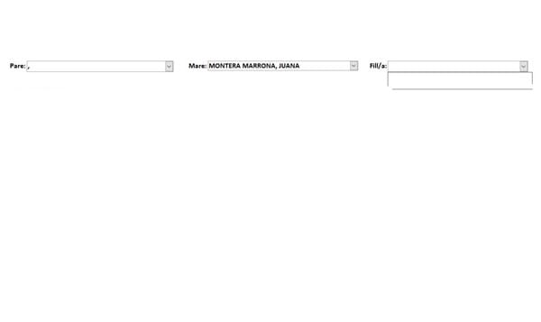 De manera que lo que necesitaría es que permita escoger en uno de los dos cuadros y si no existe padre o madre no tenga en cuenta el cuadro combinado que no tiene valor. No sé si me he explicado bien. Lo que se me había ocurrido es hacer 2 parejas de cuadros combinados, es decir, una padre-hijo y otra madre-hijo, pero no queda bien. Al intentar hacer esto último lo curioso del caso es que al poner un padre muestra la madre correspondiente pero el campo del hijo sale vacío.