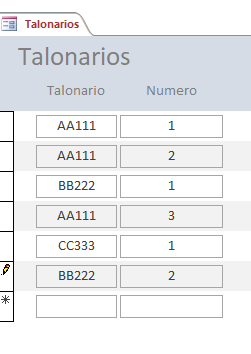 En un formulario de Access necesito capturar los datos de boletos. Los boletos se agrupan en Talonarios, donde cada talonario tiene N número de boletos con su respectivo número de folio. Requiero poder capturar en un un formulario en vista DataSheet, los números de talonario y que se vayan repitiendo en el siguiente registro hasta que se ingrese uno número de talón diferente (eso ya lo hice), pero lo que no he podido hacer es que al escribir un número de folio, se autoincremente en uno en el siguiente registro y así hasta que ingrese otro número de folio y éste se incremente en uno automáticamente, me han sugerido usar la función DMax pero éste toma el valor maximo del folio en la tabla, pero sucede que en un nuevo talonario el folio puede ser menor a los que ya exista en la tabla. Sé que pudiera hacerlo en VBA pero no se mucho de programación y no lo he podido realizar. ¿Alguna idea de cómo realizar ésto?