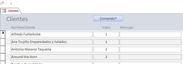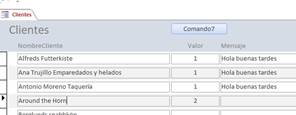 Private Sub Comando7_Click() DoCmd.GoToRecord , , acFirst Dim i As Byte For i = 1 To Me.Recordset.RecordCount If Valor = 1 Then Mensaje = "Hola buenas tardes" ElseIf Valor <> 1 Then Exit Sub End If DoCmd.GoToRecord , , acNext Next End Sub