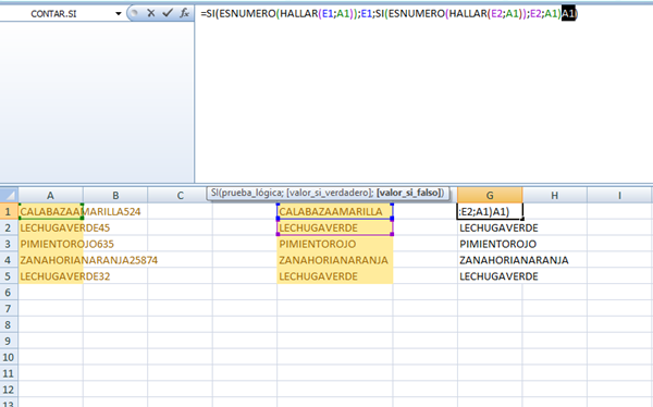 que se va ampliando a medida que vas añadiendo celdas de una columna =SI(ESNUMERO(HALLAR(E1;A1));E1;SI(ESNUMERO(HALLAR(E2;A1));E2;A1))