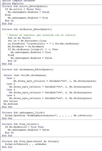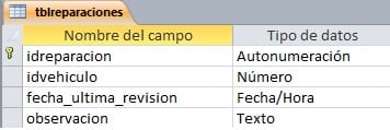 strSQL = "INSERT INTO tblreparaciones(idvehiculo,fecha_ultima_revision,observacion) VALUES(" & Forms!frmvehiculos.idvehiculo & "," & "#" & Format(Me.fecha_ultima_revision, "mm/dd/yyyy") & "#" & ",'" & Me.observacion & "'" & ");"