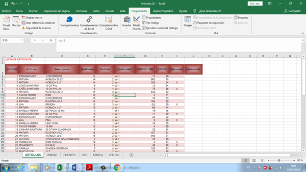 Tengo una hoja Excel donde la columna A corresponde al artículo y la columna B al código