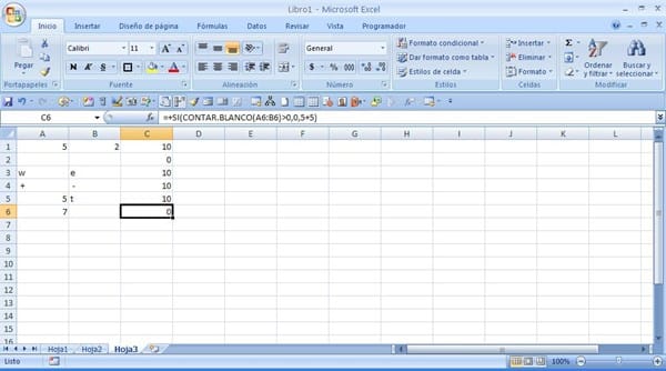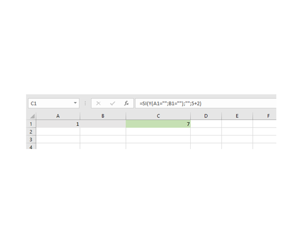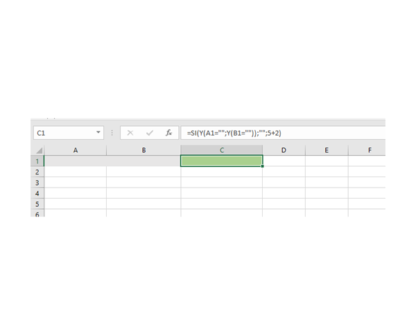 La idea es que cuando la celda A1 y la B1 tengan cualquier dato, es decir, que no esté vacía, en la celda C1 me sume 5+5.