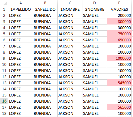 Hola amigos, esta vez le escribo porque como podran ver en la presente imagen, tengo en la columna E unos valores unos de color negro y otros de color rojo con formato condicional. Necesito que me ayuden con una macro que sea capaz de eliminar las filas, siempre y cuando en la columna tenga el color.