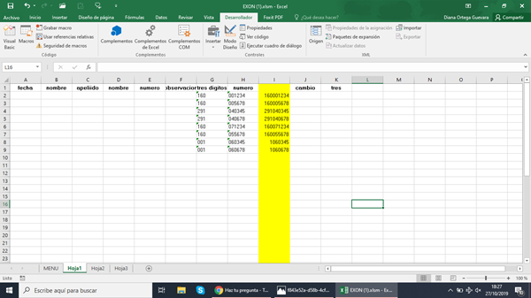 Como se puede observar en la imagen en la columna I al final me borra los ceros al inicio, que estaban en la columna G. Necesito que al ejecutar la macro estos 0 no se borren.