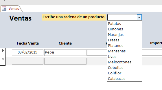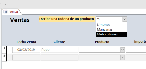 Búsqueda en los valores de un cuadro combinado