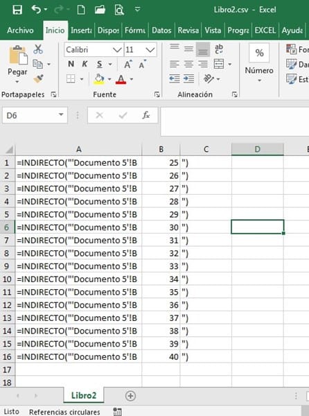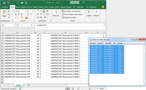 Paso 1 en la columna1 escribir este texto '=INDIRECTO("'Documento 5'!B y llenarlo hasta la fila 800