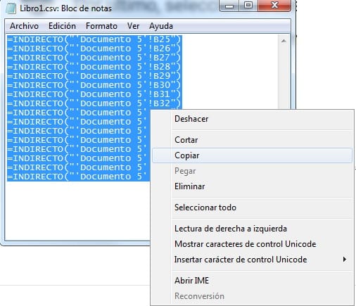 Por ultimo, selecciona todos los datos del bloc de notas y los pega en su archivo de excel en la columna correspondientes