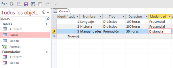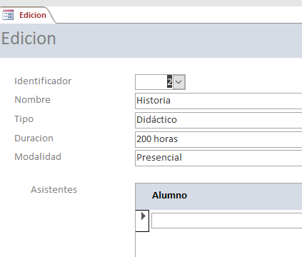 Por motivos laborales estoy retomando el Access y estoy haciendo una tabla para la gestión de cursos de formación y la verdad es que estoy muy oxidado (a parte de que nunca he tenido unos conocimientos muy avanzados en Access).