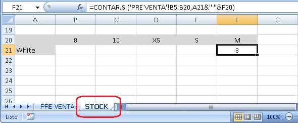 La función CONTAR.SI no me cuenta determinadas celdas de una columna, estas celdas contienen texto, del estilo "Talle M".