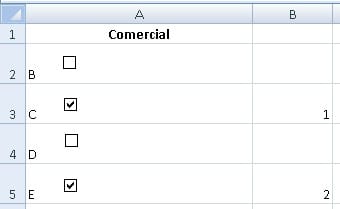 En una hoja de Excel tenemos en la columna A un listado de comerciales, al lado de cada comercial tenemos un Formato de control del tipo de los de verificación, de esos que cuando haces clic en ellos sale una marca de verificación parecida a una v. Pues lo que necesito es que cuando hacemos clic en uno de ellos, por ejemplo en el que corresponda al comercial que está en la celda A23, si el resto de formatos de control aún están en blanco y este va a ser el primero, pues que en la celda B23 tenga el valor 1, si luego p.e. Hacemos clic en la celda A11, como el valor 1 ya está asignado a la celda B23 pues que aparezca en la celda B11 el valor 2, si a continuación hacemos clic en la celda J8 pues al estar ya "ocupados" el 1 y el 2 pues que le asigne a la celda B8 el número 3, y así sucesivamente.
