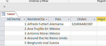 ejemplo (1 2 3 4 5 6 A B C D E F ) son los valores del campo orden