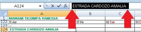 - Cada nombre debería tener grupos de filas en pares, es decir, una fila con días y la fila de abajo con horarios.