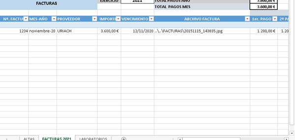 Tengo una macro con una base de datos y quiero que uno de los datos lo inserte en la hoja facturas2021 como un hipervínculo (Hoja3. Cells(fila, 6).Value = Hoja1. Range("D13"). Value). También me gustaría que si el vencimiento fuese en 2022, crease una nueva hoja (p.e: Facturas20222) con la misma cabecera que facturas 2021. ¿Alguien puede ayudarme? Muchas gracias de antemano. No he sabido mandar el adjunto, envío foto