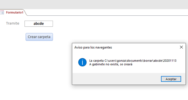 MkDir "C:\users\gonza\documents\borrar\" & Me.Tramite & ""