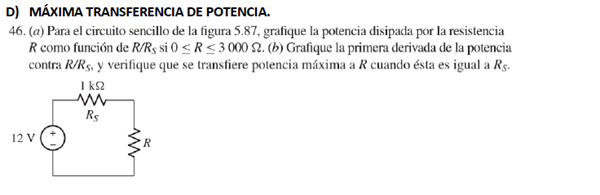¿Cómo graficar la potencia disipada por la resistencia R con función de R/Rs si R se encuentra entre 0 y 300? De acuerdo al al enciso a, y también como se resolvería el enciso b donde también pide graficar la primera derivada de la potencia contra R/Rs?