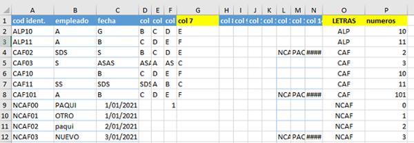 Lo que hace la macro es colocar fórmulas en col O:P para extraer la parte numérica de la de texto. Luego se guarda como solo valores y se ordena la tabla por esas 2 col.