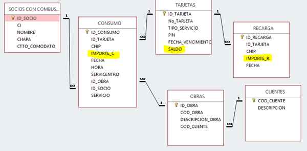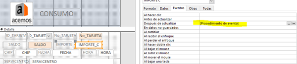 Y un formulario que capta de la tabla CONSUMOS el IMPORTE y donde se muestra el el SALDO que existe