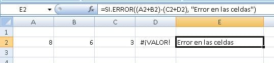 Incluso si alguna celda tiene el error #¡VALOR!, la fórmula regresa el mensaje "Error en las celdas":