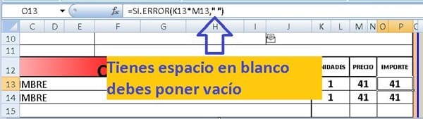 El resultado de la fórmula es vacío o el resultado tiene espacios en blanco : " "