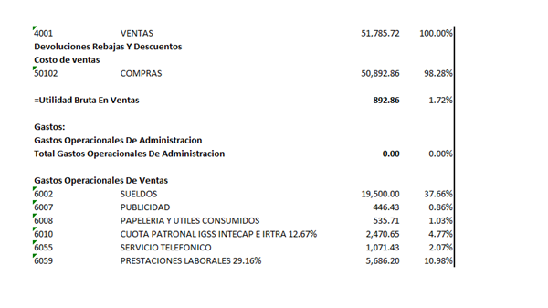 Necesita calcular el porcentaje individual de cada cuenta utilizando las ventas como el 100%, cómo modifico el código: