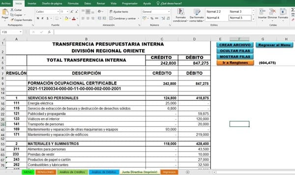 Te comento mi solicitud el archivo que has venido apoyándome tiene un botón que se llama crear archivo, el objetivo de este botón es crear un archivo nuevo en formato pdf, esta hoja tiene varias macros, las cuales son para ocultar y mostrar filas, ya hay una macro iniciada pero me da algunos errores y el archivo nuevo lo crea en formato excel y como el archivo tiene varias formulas de subtotales da error al final, por lo que quería ver si puedes revisarla.