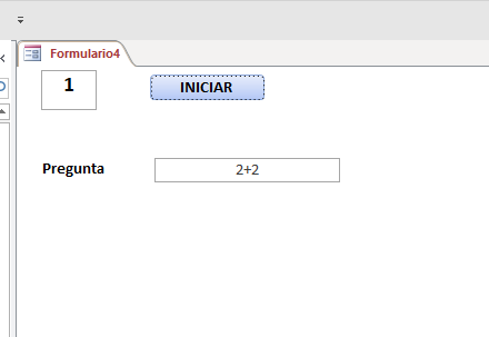 Estoy diseñando una BBDD en Access 2007 que permita realizar el típico juego de preguntas y respuestas. Para ello dispongo de una tabla (TABLA) con los campos ID, PREGUNTA, RESPUESTA y un formulario con 3 cuadros de texto y 2 botones, uno para iniciar el juego y otro para cerrarlo.