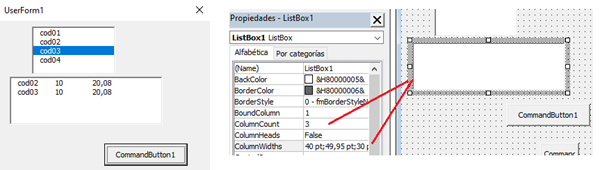 Private Sub CommandButton1_Click() Dim E, G, F, resul As Double On Error Resume Next 'If fila = Me.ListBox2.ListIndex Then 'Me.ListBox1.AddItem ListBox2.List(fila, 2) 'ListBox1.List(ListBox1.ListCount - 2, 2) = ListBox2.List(fila, 2) If ListBox2.ListCount > 0 Then Me.ListBox1.AddItem ListBox2.Text For i = 0 To ListBox2.ListCount - 1 If ListBox2.Selected(i) = True Then End If Next i End If E = Hoja2.Cells(5, 2).Value G = Hoja2.Cells(7, 2).Value F = Hoja2.Cells(6, 2).Value resul = E * G / F ListBox1.List(ListCount - 1, 2) = resul End Sub