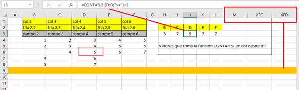 Y para los usuarios que pudieran tener espacios vacíos en alguna columna, tampoco es una solución válida la del formato condicional con función CONTAR. SI. Basta probar de quitar algún valor en col D (por ej la celda marcada en D6) y la cuenta ya no dará los mismos resultados, coloreando una fila errónea.