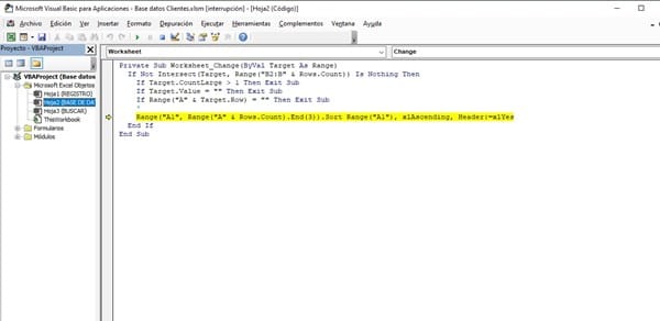 Ordenar datos automáticamente al completar