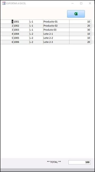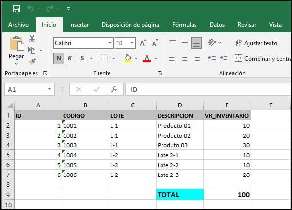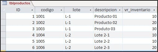 Observe que la columna vr_inventario es igual al total del formulario de Access.