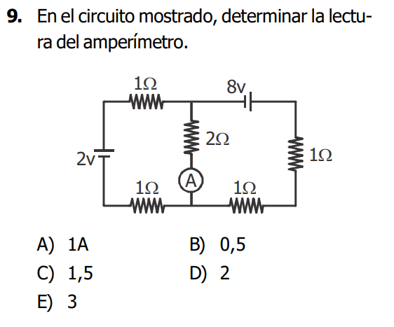En el circuito mostrado, determinar la lectura del amperímetro.