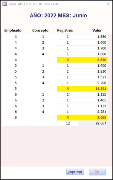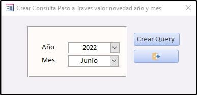 He programado el botón para consultar el año y mes o únicamente el año. Igualmente, adicioné el formulario y un informe con base en el resultado de la consulta paso a través. La consulta paso a través la creo con la función CreaQuerySubtotalPorAnnoMesEmpleado.