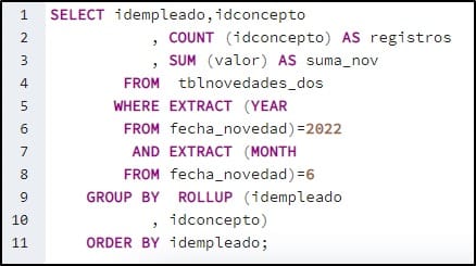 strSQl = strSQl & " GROUP BY ROLLUP (idempleado" & vbCrLf