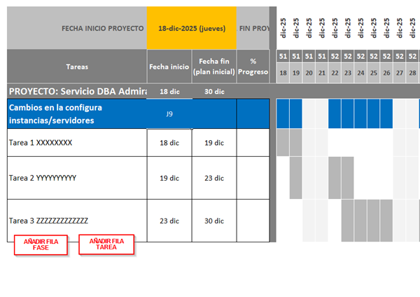 Tengo una GANTT con filas que representan fases de color azul y cada fase tiene tareas asociadas tareas (hay varias fases y cada fase tiene varias tareas).