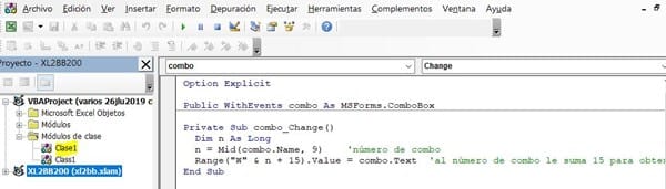 Listo, después de ejecutar la macro regresa a tu hoja, modifica alguno de los combos y en automático se modificará la celda.