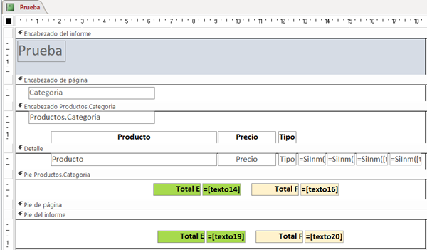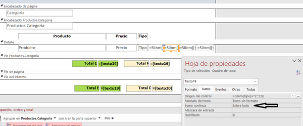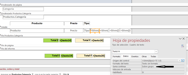 Calcular en informe de Access dos valores de texto de un mismo campo.