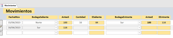 Y tengo una tabla Movimientos con la que hago un formulario. Da igual si es único o continuo, pero continuo se ve mejor.