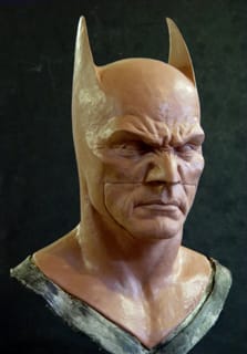 Ya que tienes el positivo en yeso, hay que empezar a modelar (puede ser en plastilina o en arcilla), intenta tener a la mano varias fotos de DareDevil y sobre todo en distintos ángulos. Ya que tienes modelada la máscara tomas el molde en yeso roca. Hay que repetir aquello de la frontera, ésta la puedes hacer de plastilina (también dejando muescas para que embonen las partes) y sacar primero el molde de atrás, quitas la plastilina, das una capa de manteca vegetal sobre el yeso que llegó a la frontera y viertes el yeso para tomar el molde del frente.