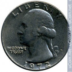 Moneda de plata de un cuarto de dolar americano de 1972.
