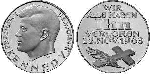 En el reverso de la moneda se lee: "Wir Haben Alle Ihn Verloren 22.Nov.1963"